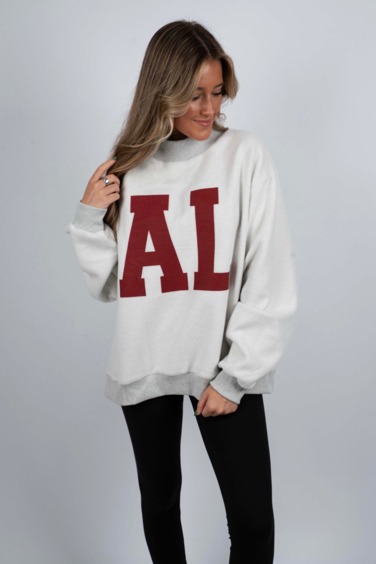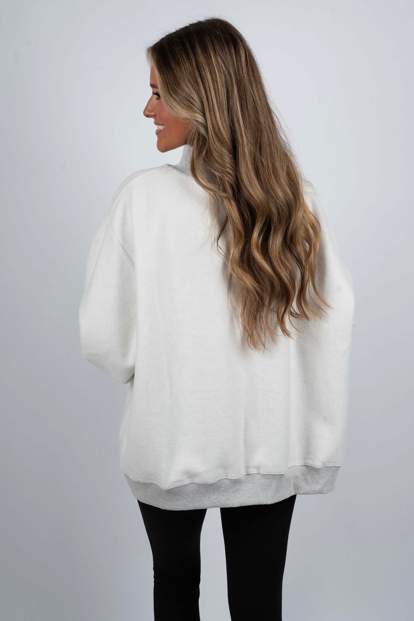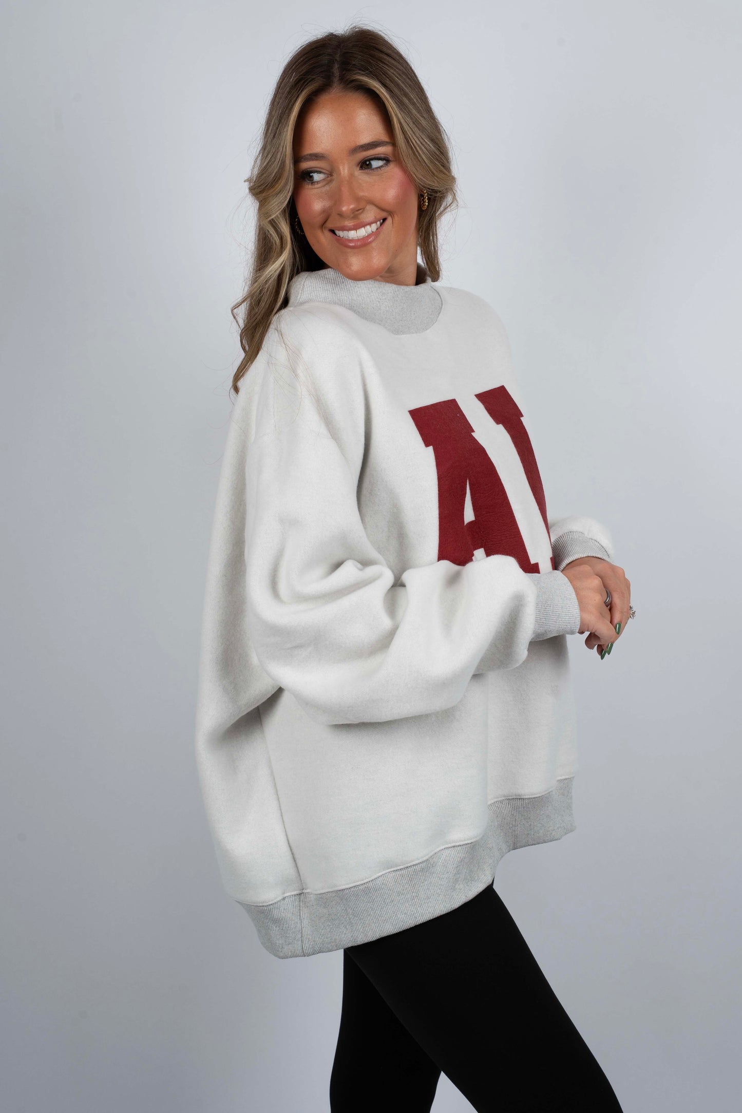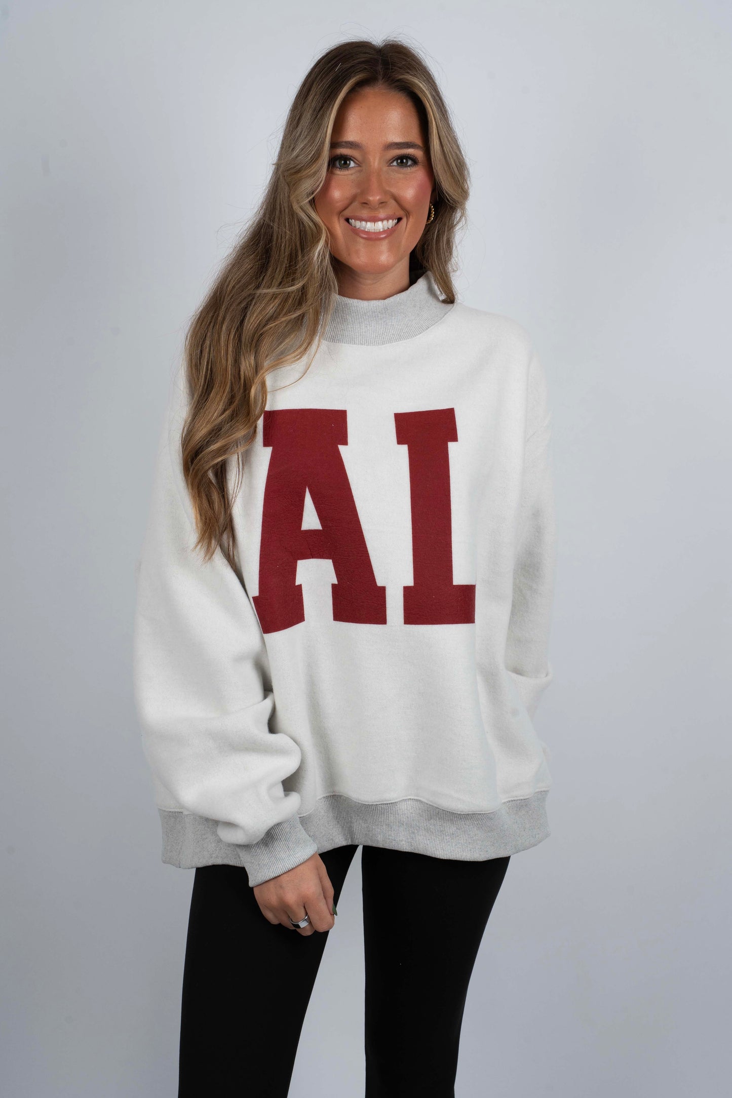 This oversized reversible mock neck sweatshirt offers dual functionality with Georgia styling on one side and GA design on the other. Crafted for versatility, it provides comfort and adaptability that is perfect for game days!