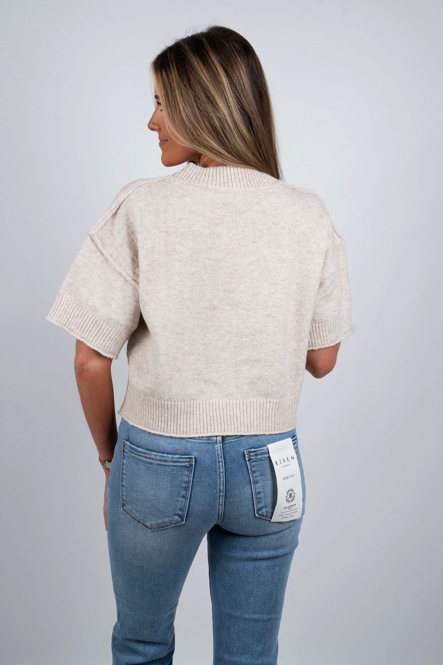 Springtime vibes meet cozy comfort in this playful mock neck sweater. The dropped shoulders create an effortlessly cool silhouette, while the cropped length pairs perfectly with high-waisted bottoms for a modern look. Soft knit fabric keeps you warm without the bulk, making it ideal for layering through transitional seasons. Whether you're heading to brunch or casual hangouts, this oatmeal-hued essential brings a touch of relaxed sophistication to any outfit.