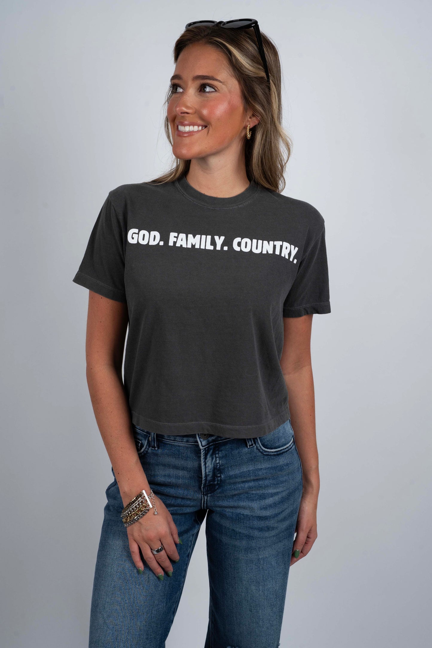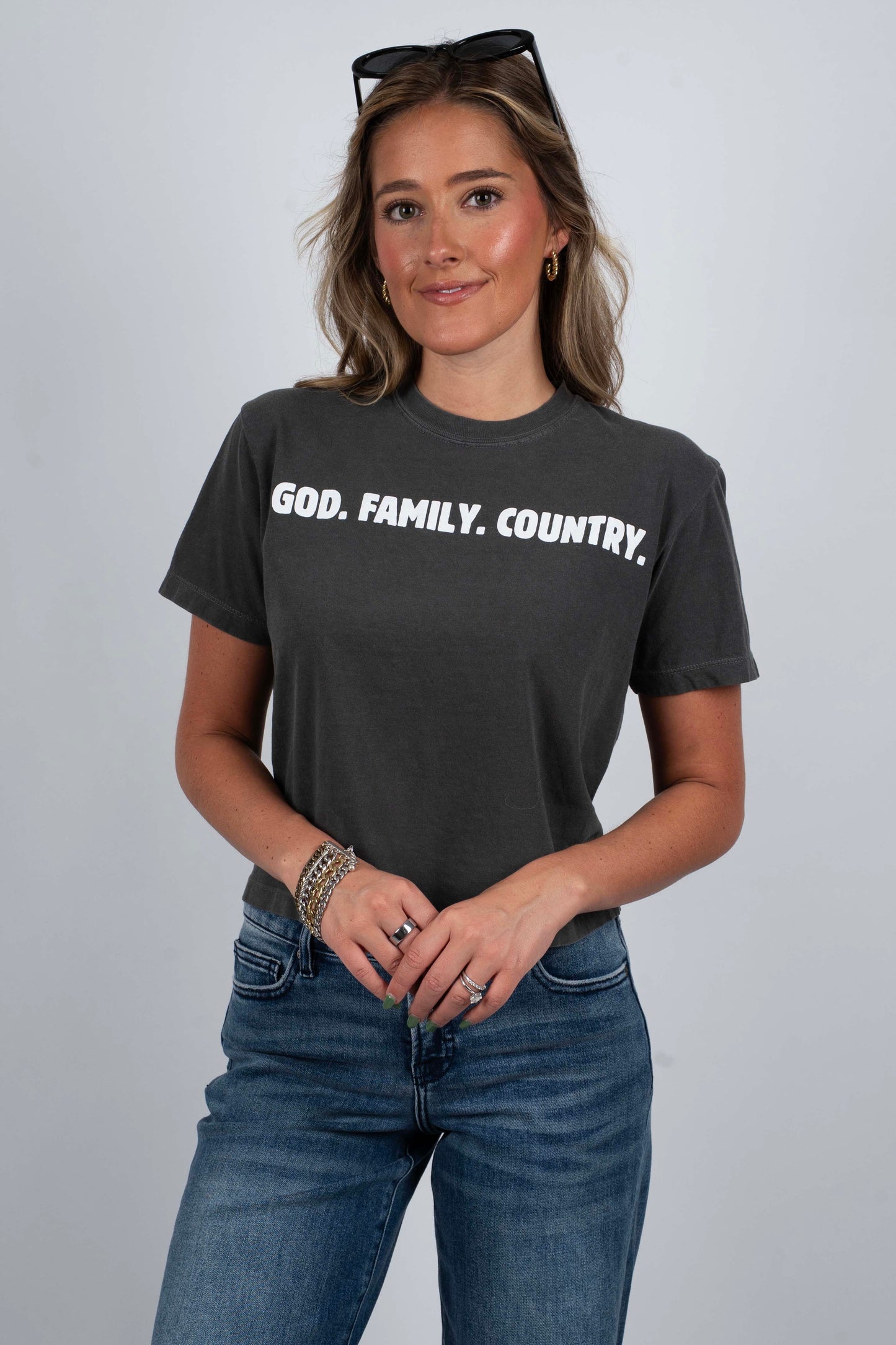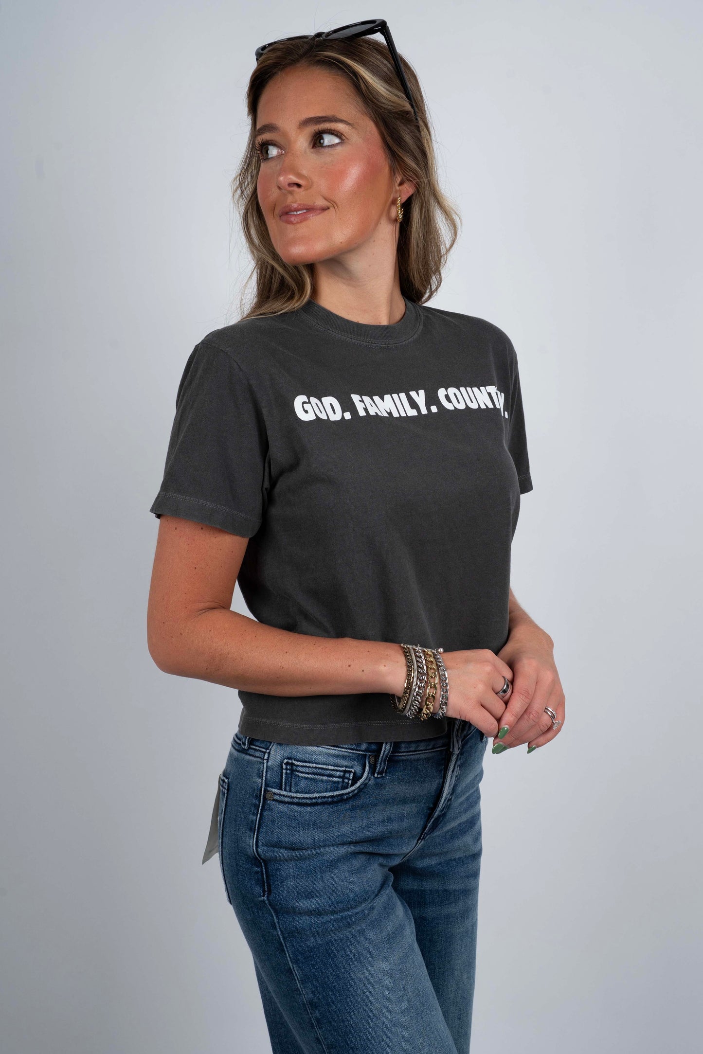 We love the lightweight and soft material paired with a classic comfort colors fit! It's so simple yet so perfect! This tee is cropped.