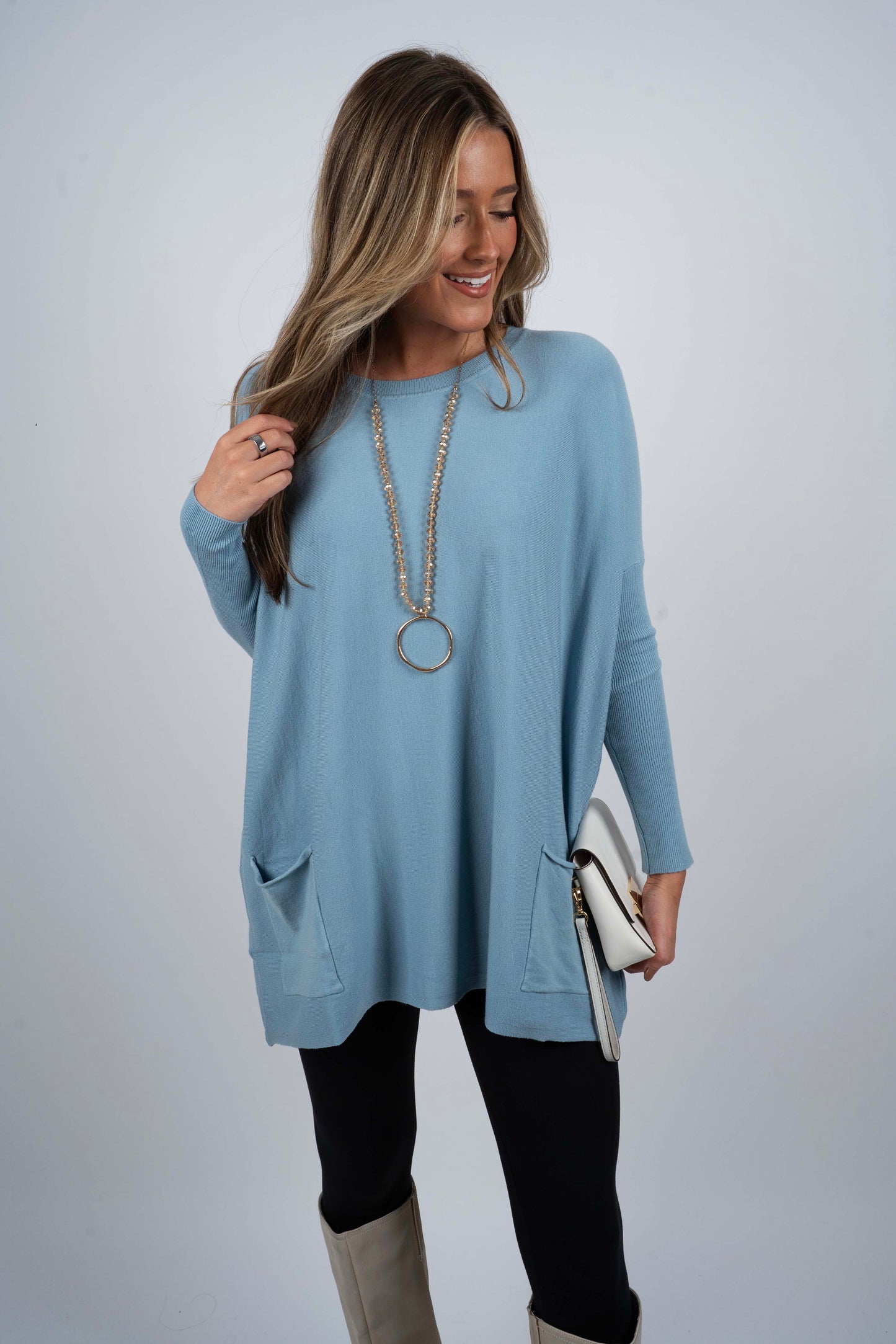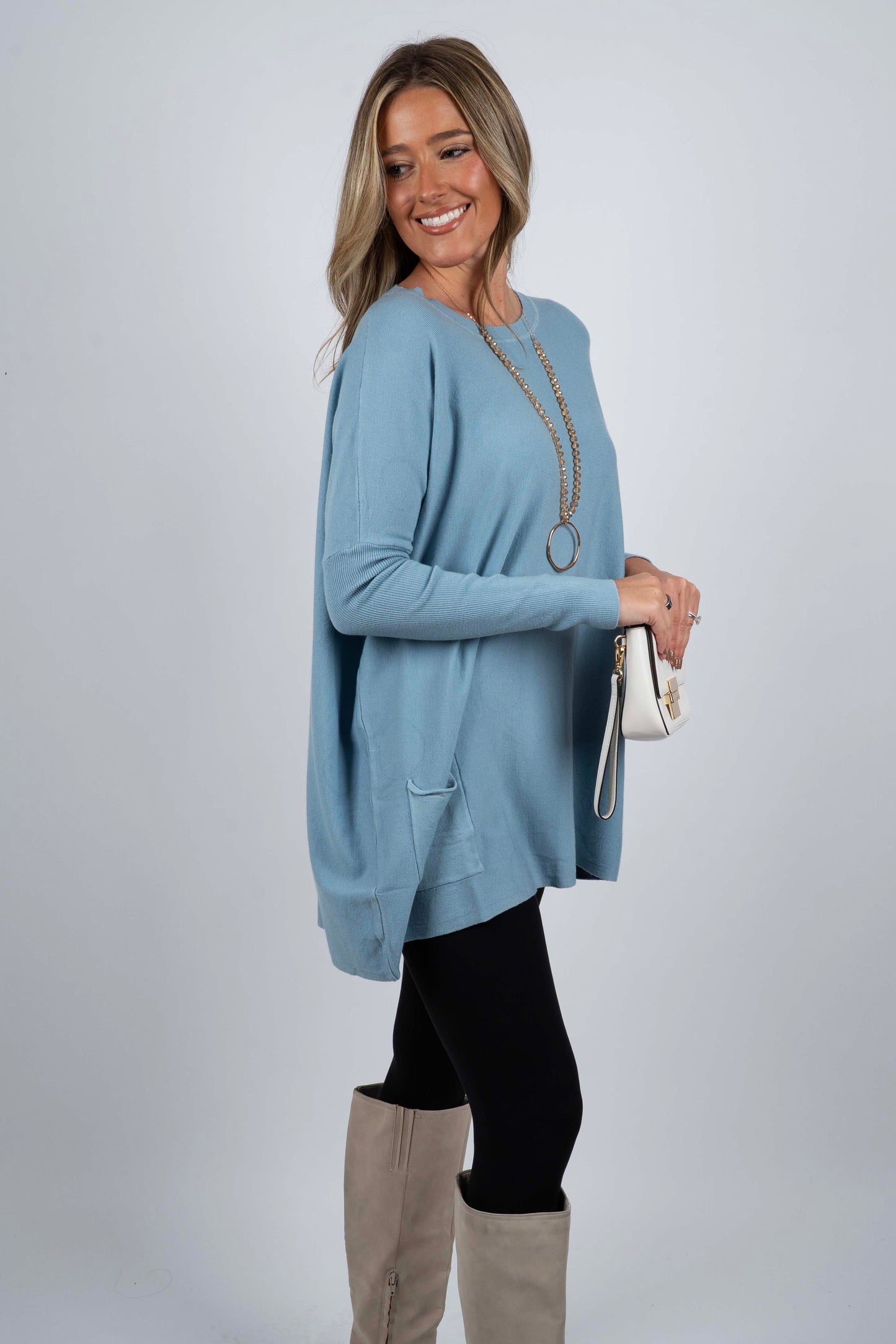 You'll be completely smitten with this gorgeous sweater. This sweater has an oversized fit with front pockets and a crew neck!