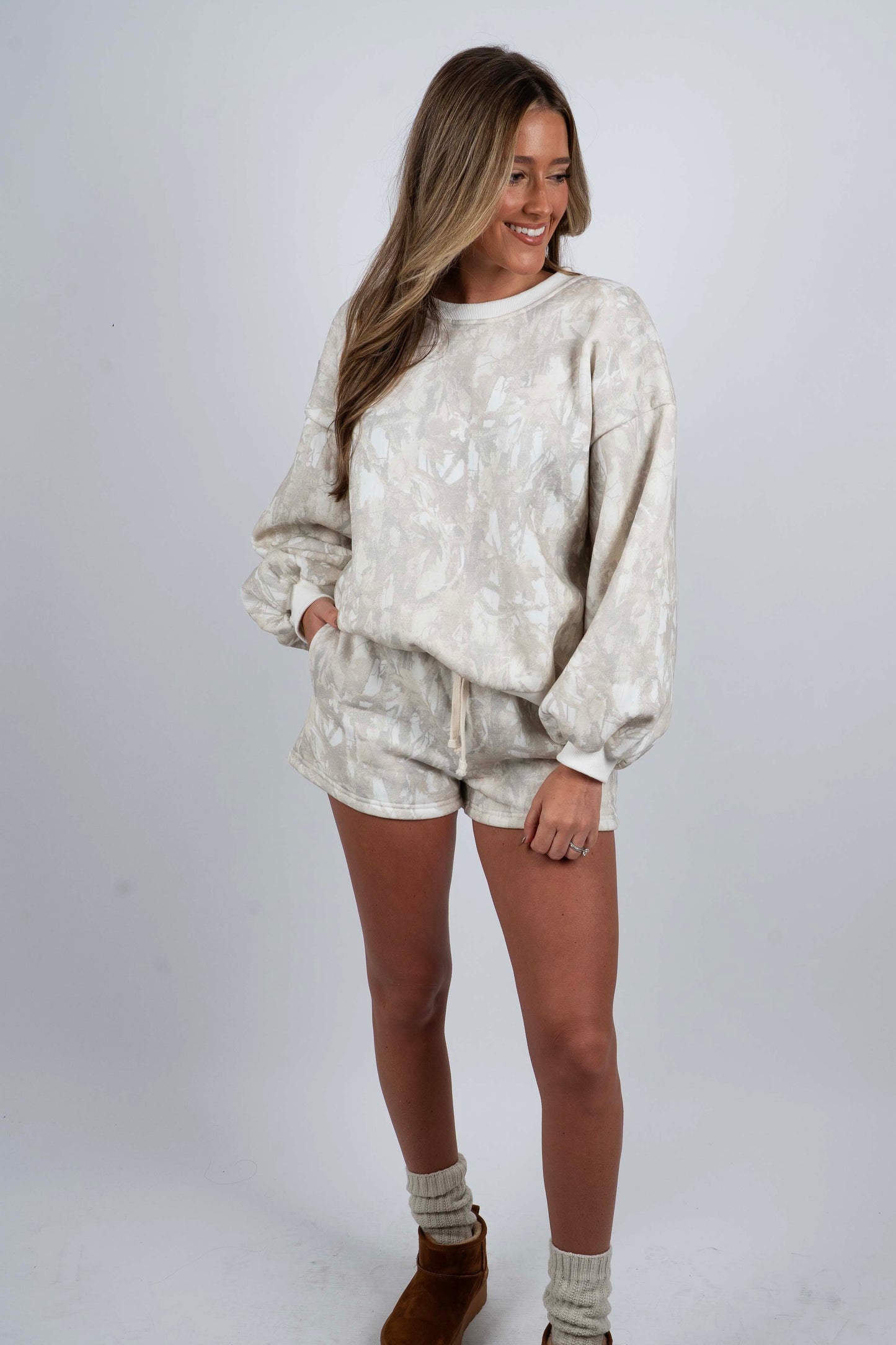 Rock the ultimate laid-back look with this Woodland Camo Set, featuring a cozy sweatshirt and matching shorts in classic camouflage print. Perfect for lounging, outdoor adventures, or effortless everyday style, this duo keeps you comfortable and on-trend. The soft sweatshirt pairs seamlessly with the shorts for a coordinated vibe that works whether you're chilling at home or stepping out. Mix, match, or wear together—either way, you're serving serious comfort goals.